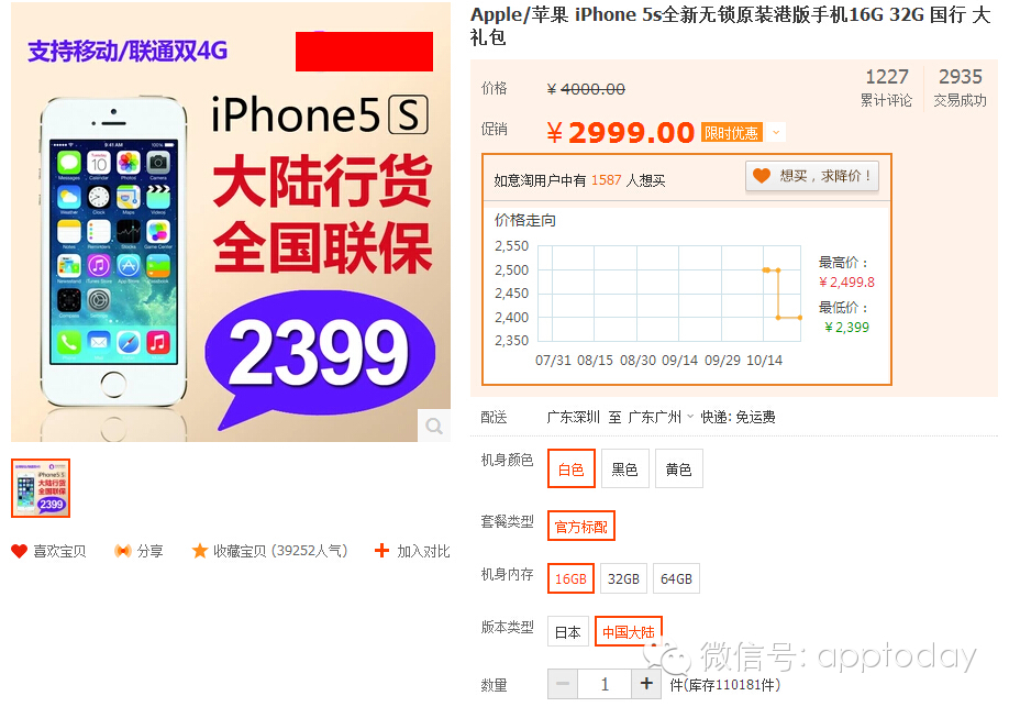 马云家前不久才在美帝上市,他家淘宝的iPhone 5S居然便宜的感人!16G乞丐版3k大洋就可以拿下,还有什么“三码合一”、“假一赔十”的售后保障,岂有不买之理?